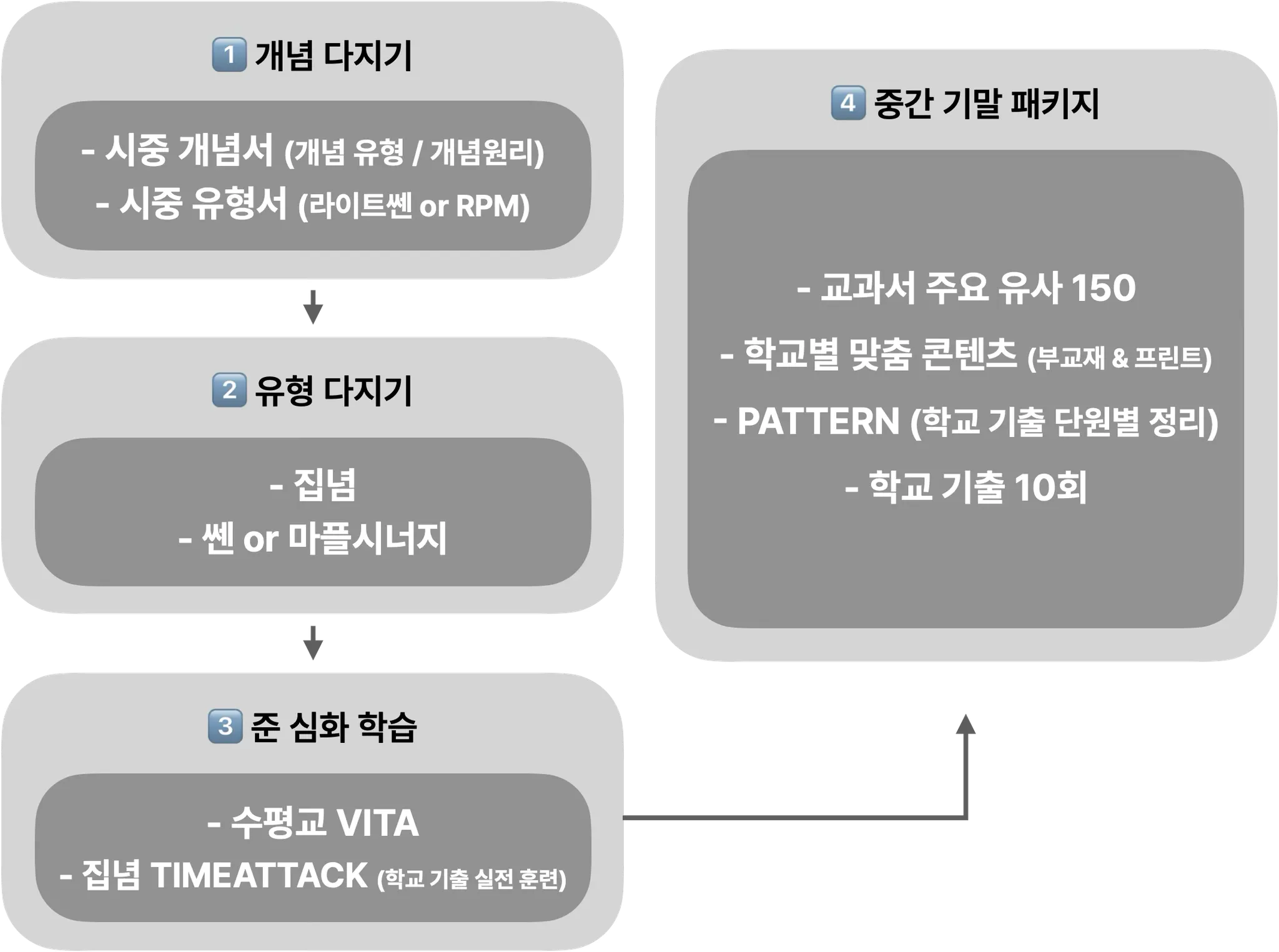 중간/기말 대비 커리큘럼 4단계.